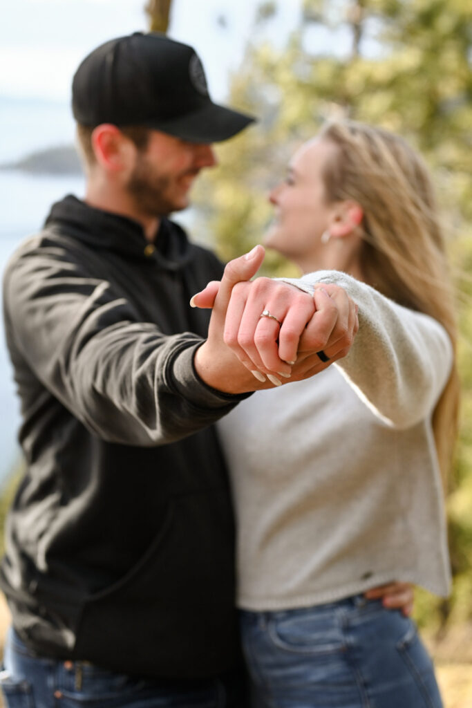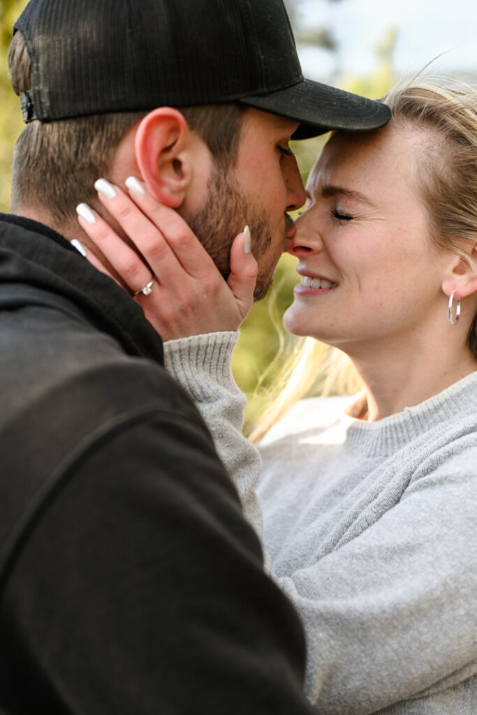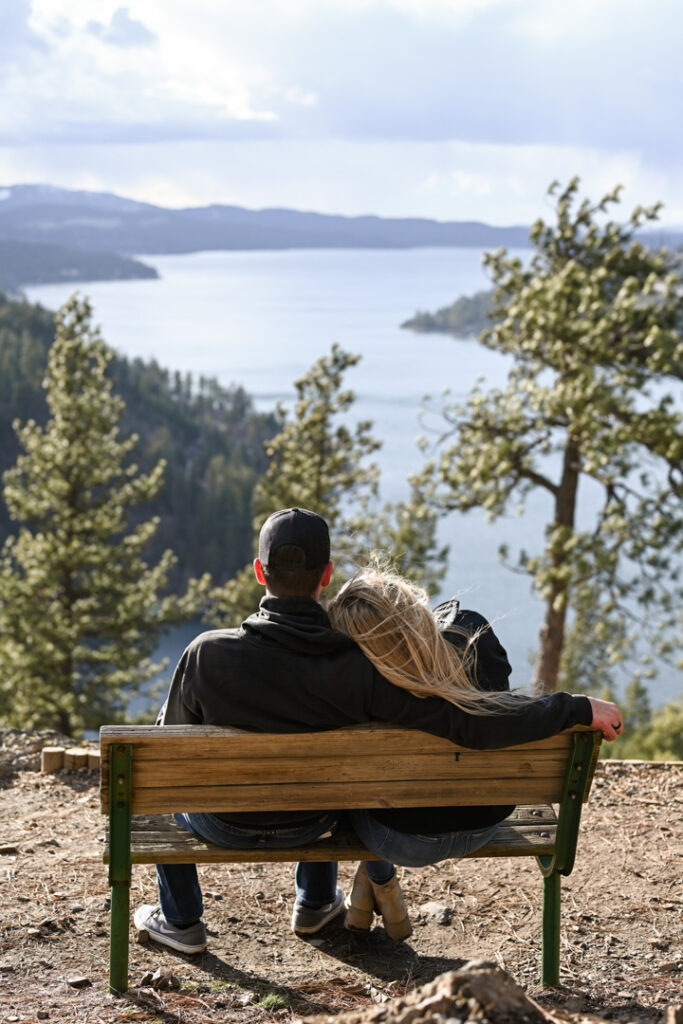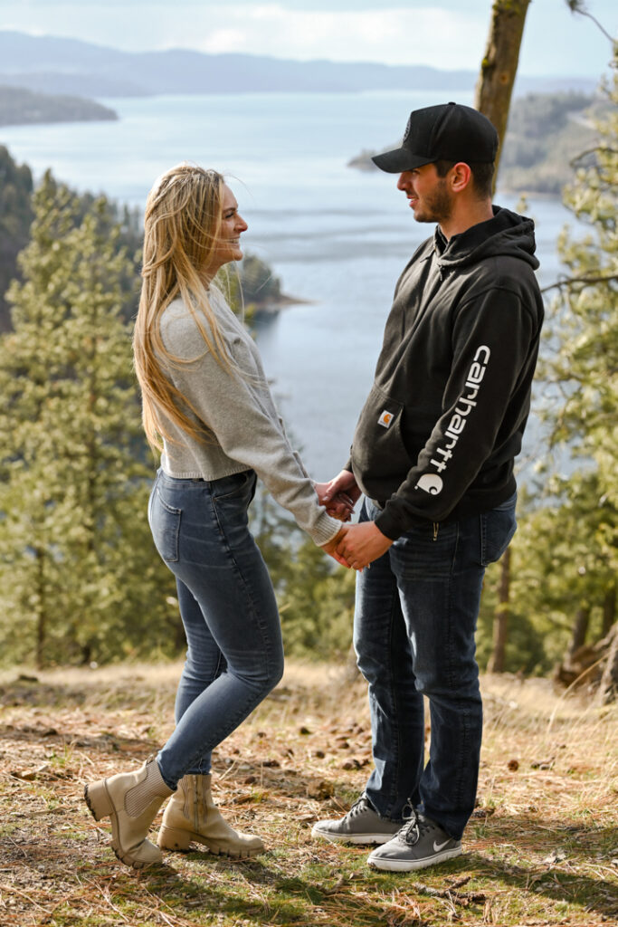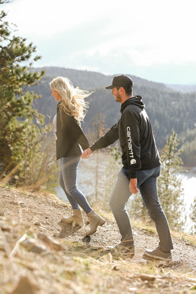 It had been raining all day. We almost rescheduled their session, but at the last moment the sun came out. We headed to Mineral Ridge, praying the sun would stay out just long enough for Jack and Jenna’s photo session. Jack and Jenna hiked all the way to the top of Mineral Ridge in the windy sunny weather with smiles on their faces the whole time. We were all determined to get to that beautiful view. When we got to the top, it was cold but that would not stop these two cuties from laughing and smiling! We made it back down right before a down pour of rain and snow!