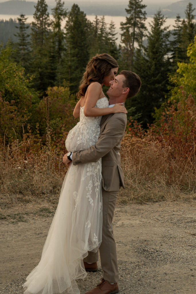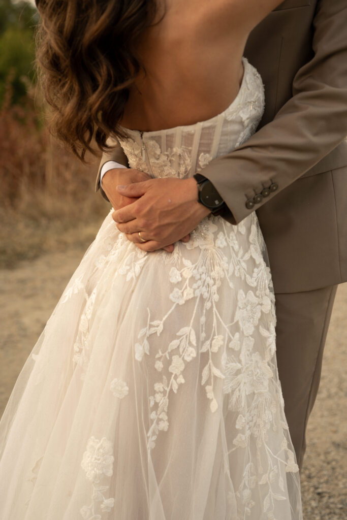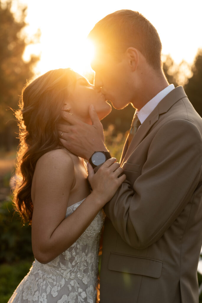 Though they’d already eloped, Angie and Aidan wanted to bring everyone together for a relaxed and meaningful day to celebrate. And what better place than his parents’ backyard? They wanted a celebration that reflected who they are as a couple: genuine and thoughtful, with a hint of whimsy. Together with their nearest and dearest, they had a sweet and personal gathering in a garden brimming with vibrant colors and family memories. There was a stunning view of the lake, rows of colorful flowers, and the most perfect garden sunset.