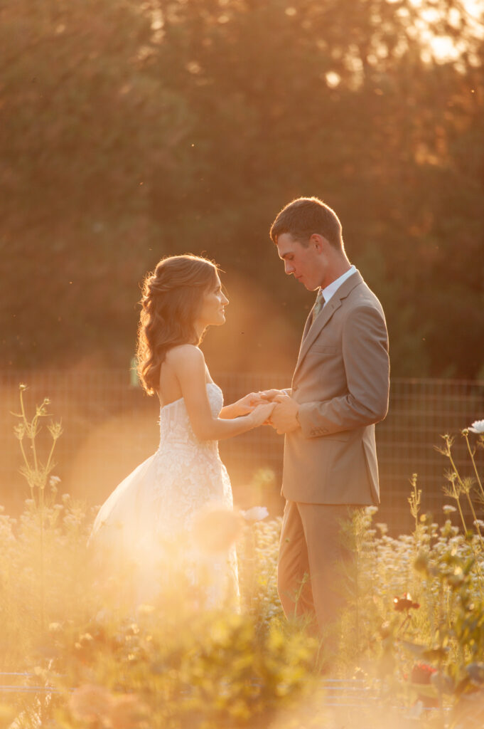Some weddings have that magical, personal touch that is just hard to explain in words. Angie and Aidan’s backyard celebration was exactly that. It was a small but beautiful gathering of close friends and family, right in the middle of a flower garden that Aidan’s mom had poured her love into growing.